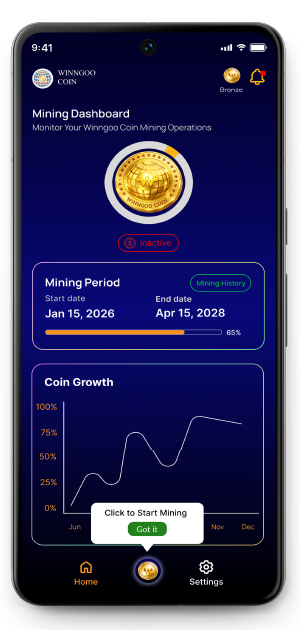 Winngoo Coin offers a cloud-powered mining platform with tier progression, referral-based growth, and secure access across devices